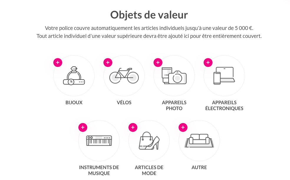 Chez Lemonade, vous pouvez également ajouter une couverture pour vos objets de valeur (d’une valeur supérieure à 5 000 €), ne les oubliez pas!